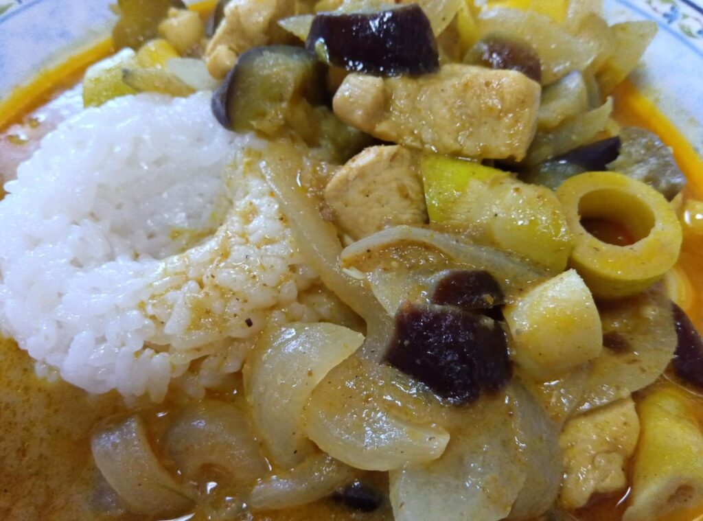 種子島の特産タケノコであるニガダケ、以前スーパーでスルーしてその後しばらく少量サイズを見かけなかったのですが、久々にあったのでゲットしてナス・玉ねぎ・鶏肉とタイカレーの具にしました。